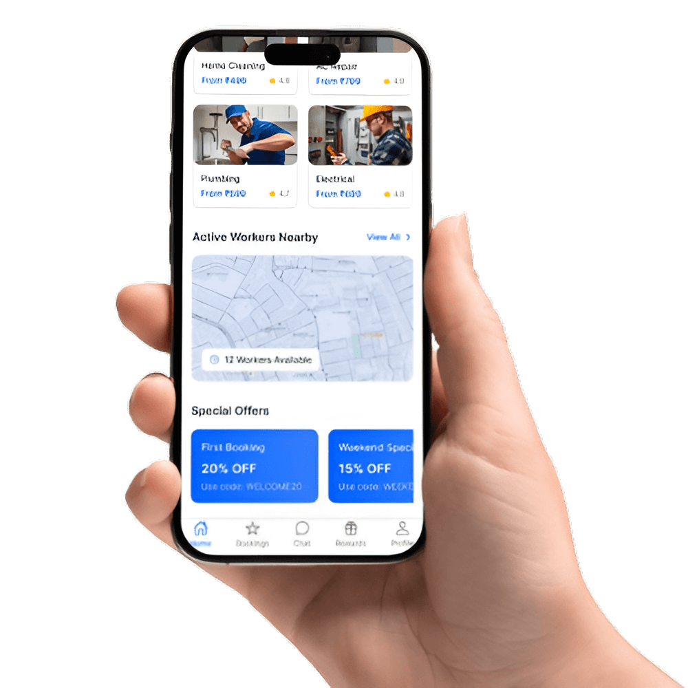 No more waiting Days for unreliable workers. Get verified local professionals instantly. No drama, no worries - from emergencies to maintenance, booking was never this easy Skip the wait. Welcome instant solutions.